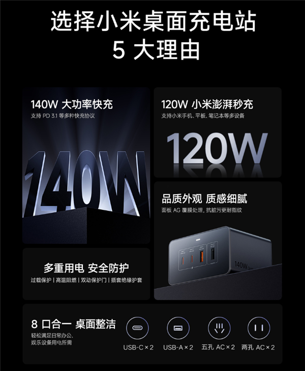 未经允许不得转载:紫竹林-程序员中文网 » 249元 小米首款140W桌面充电站开售:8口合一 140W快充