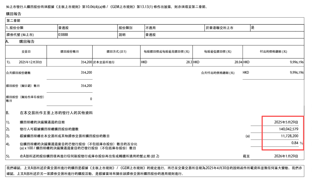 金山软件的收入主要来自于办公软件及服务、网络游戏及其他两部分。公司近年来持续回购股份,其中2025年累计回购股份1172.82万股,合计耗资约3.45亿港元。