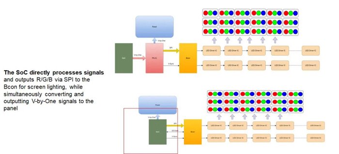 率先实现TV SoC直驱RGB背光,化繁为简,成功省去了业内昂贵的冗余画质处理IC,通过SoC直接解析并输出三色控制信号。这一变革不仅让链路更短、响应更快、画质更纯净,更大幅降低了硬件成本,破解了此前RGB-Mini LED技术因成本高企难以规模化落地的行业难题。