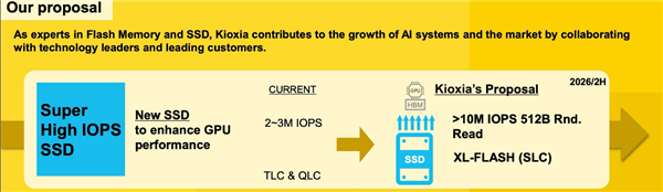 如果结合之前的爆料来看,新增的这些闪存也不是常规产品,而是NVIDIA联合铠侠、SK海力士等公司研发的高性能AI SSD,随机性能达到1亿IOPS级别,差不多是当前的10倍性能,同时延迟将是传统TLC闪存硬盘的1/10-1/20,只有5-10us。