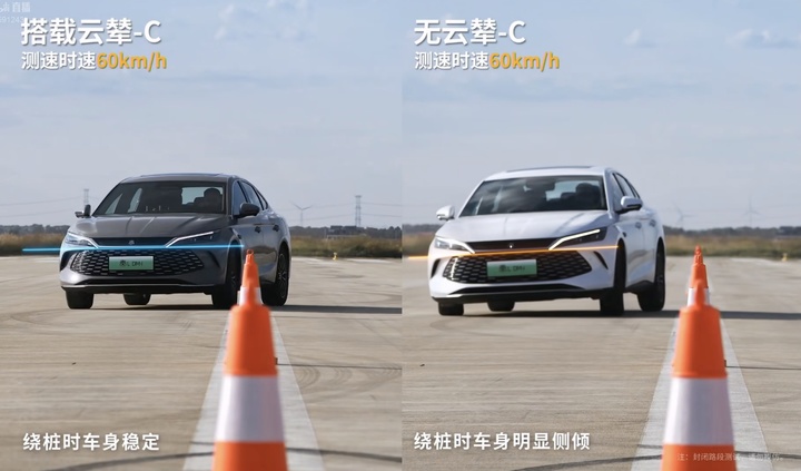 配合这套系统,比亚迪还推出了一项名为 TBC 的高速爆胎稳行技术。这是一个针对爆胎的补丁,当车辆在 120km/h 至 140km/h 的高速行驶中发生爆胎时,系统能在毫秒级时间内联动云辇-C 稳住车身姿态,防止车辆失控或翻车。