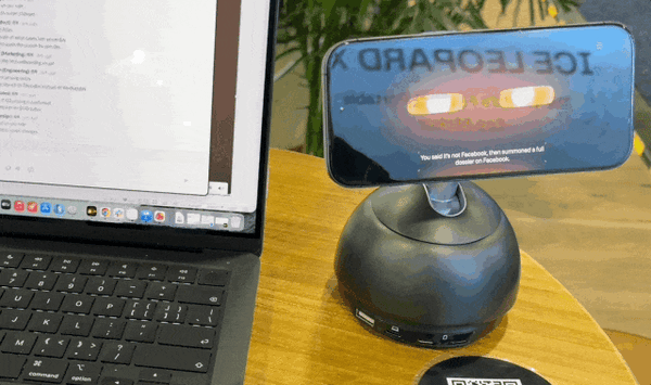 但如果我们把一台手机吸到它的无线充电器上,事情就不一样了。
