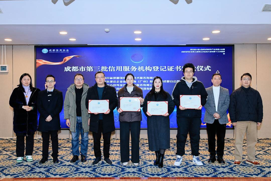 为规范信用服务市场秩序,提升行业整体服务水平,成都信用协会在2025年开展了成都市第三批信用服务机构自律登记工作,经过严格审核,共有7家机构符合条件,在大会上为服务机构发放了自律登记证书。这既是对机构专业能力的认可,更是对行业发展的规范,更是规范行业发展的具体举措。