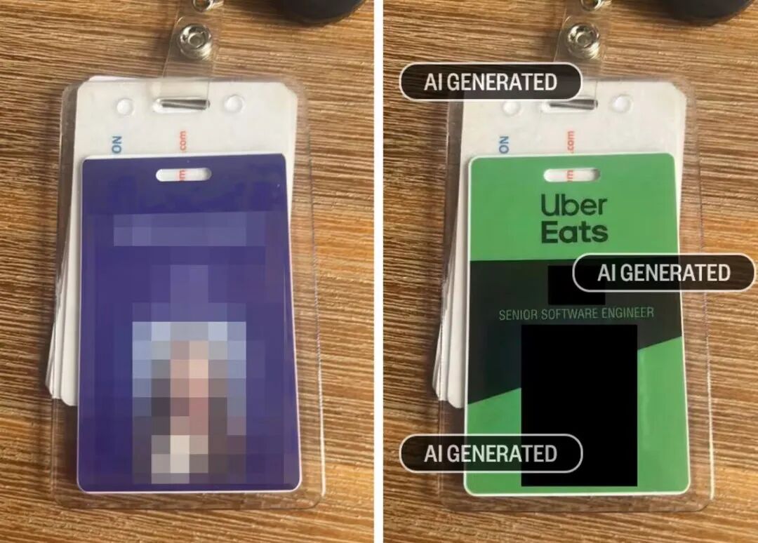 NBC新闻发出的报道则更有力了:这张虚假的工牌照片,就是利用NBC记者发给帖主的工牌照片生成的。而被迫接锅的“美国外卖公司” Uber的发言人表示, Uber Eats根本就没工牌。