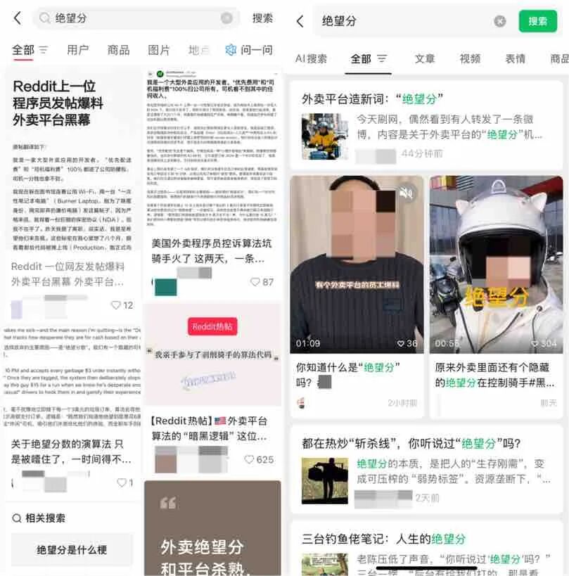 简中的帖子,大致都搬运了原帖内容,也获得了不少的流量,以及与海外网友相同的情绪共鸣:对自己工作中类似体会的抒发,对身边外卖骑手的同情,对系统的谴责。