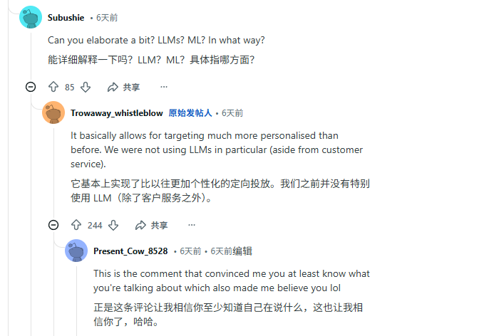 曾一些评论发出质疑,帖主在评论区留下的大部分回复,文字水平远远低于既有情绪又有技术的原帖。