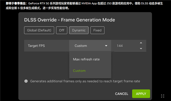 需要注意的是,DLSS 4.5 6倍多帧生成、动态帧生成两项功能,仅支持RTX 50系列显卡,而且需要等到2026年春季的后续驱动更新才能实现。