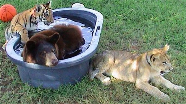 虽然如今老虎、黑熊、狮子,这三种动物在野外永远不可能三个同时相遇,但是我们可以预见的是,即便它们相遇了,也是一场斗争,而不可能是和平相处。