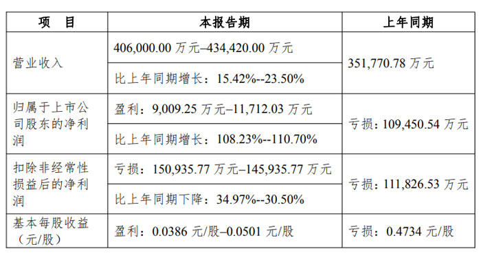 不过,报告期内扣除非经常性损益后的净利润仍处于亏损状态,预计为 145,935.77 万元至 150,935.77 万元,较上年同期的亏