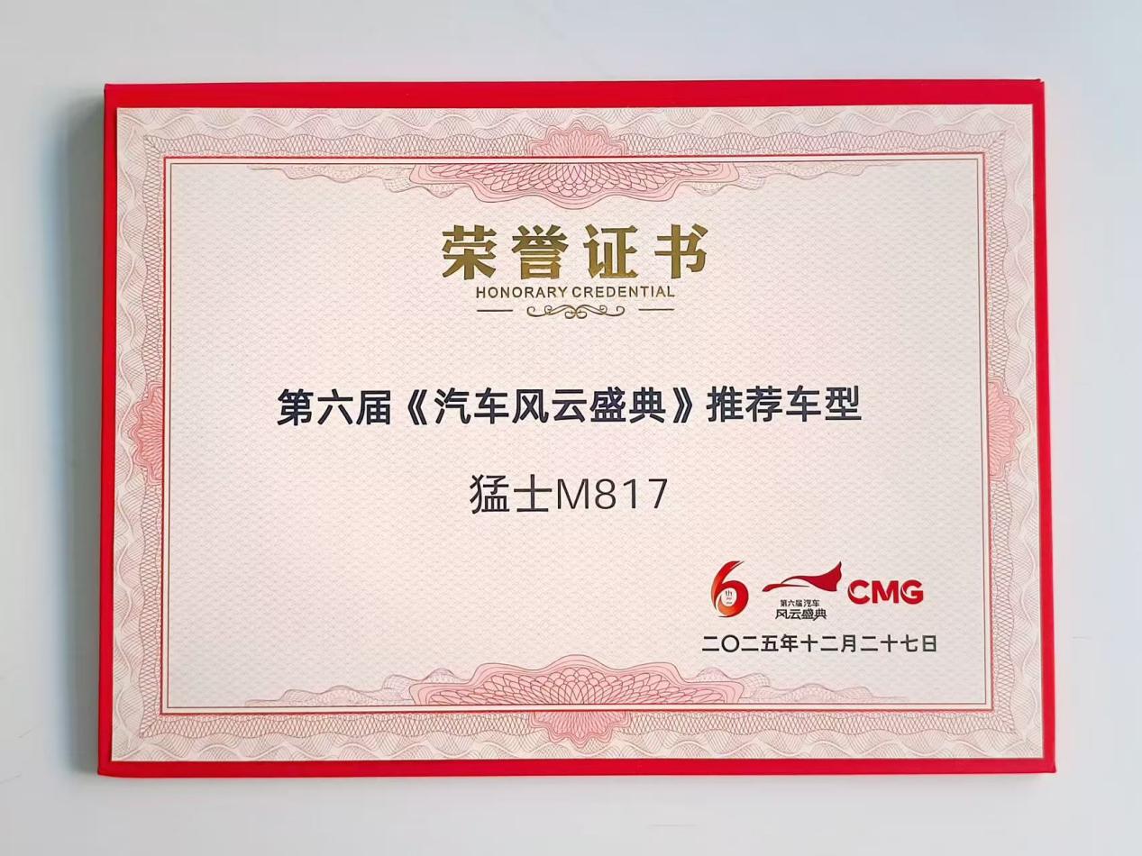 此次斩获《汽车风云盛典》“盐城嘉年华”代表车型荣誉,不仅印证了猛士 M817 的硬核产品实力,更彰显其在智能越野领域的标杆地位。未来,猛士汽车将始终以用户核心需求为核心,持续深耕智能越野新赛道,为用户解锁全场景、高安全的智能越野出行新范式,引领中国豪华越野迈向更高阶发展。