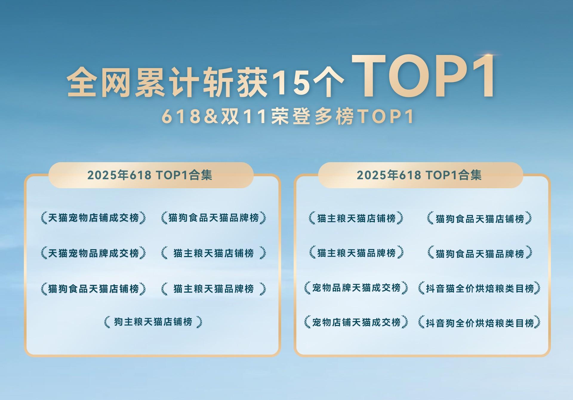 其品牌力的根基,首先是海量用户的直接选择,截至2025年12月,鲜朗已累计服务超过600万养宠家庭。在2025年的618和双11天猫大促中,鲜朗展现出强大的品牌号召力,以压倒性优势斩获15个宠物品类销量TOP1,实现了名副其实的“断层第一”,这份贯穿市场周期的荣誉簿,是其产品力与品牌力最直接的体现。