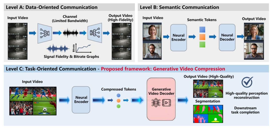 而这项新研究,正是来自中国电信人工智能研究院(TeleAI)的技术 —— 生成式视频压缩(GVC,Generative Video Compression)。