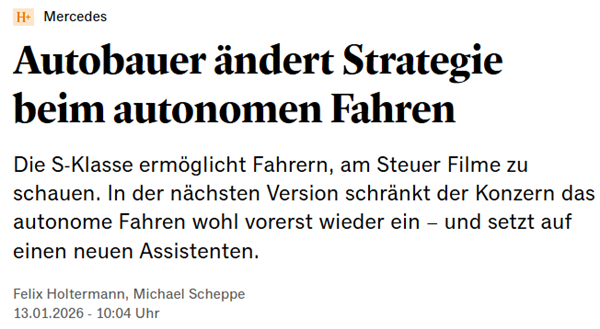 事情是这样的,前一阵德国《 商报 》发了一篇这样的采访,说奔驰公司正在调整他们的自动驾驶计划,原本在旗舰轿车 S 和 EQS 上可以选的 L3 级自动驾驶配置,在新款车型上都要被砍了。