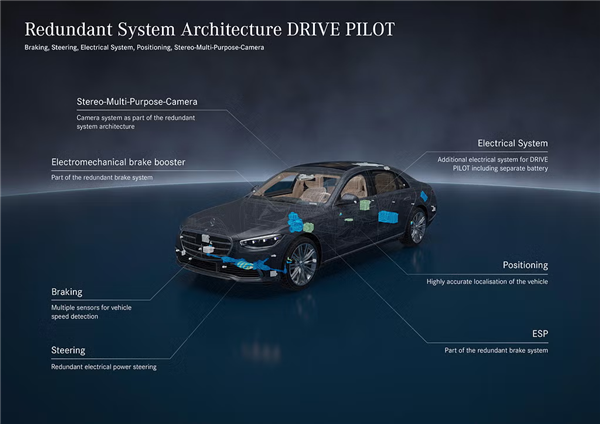 2021 年底的时候,奔驰表示自家的 Drive Pilot 系统已经可以在德国的部分路段实现 L3 级别的自动驾驶,并且在美国也获得了法规认证。