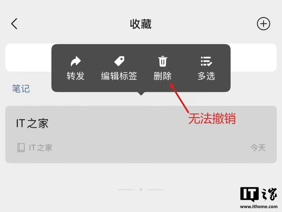 但IT之家小编要强调一下,调出这一“撤销”必须是左滑删除,倘若是长按笔记删除则不行。