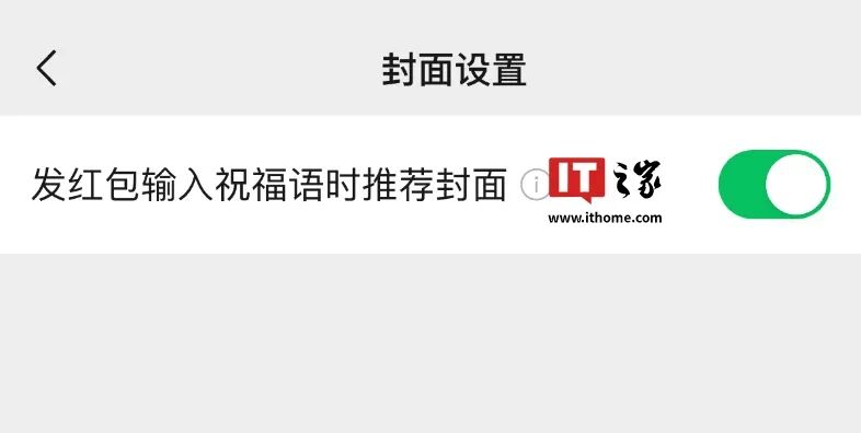 开启该按钮后,发送红包时,会根据所输入的祝福语推荐合适的红包封面。