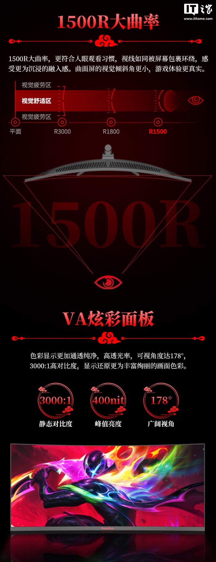 据介绍,这款产品相比传统的 16:9 显示器提升三分之一可视画面,能够让 RTS 与 FPS 游戏玩家拓宽视野,看到更多画面,提前发现战斗动向,刷新率最高可达 240Hz,搭载 VA 面板,峰值亮度可达 400 尼特,视角达 178°,静态对比度为 3000:1。