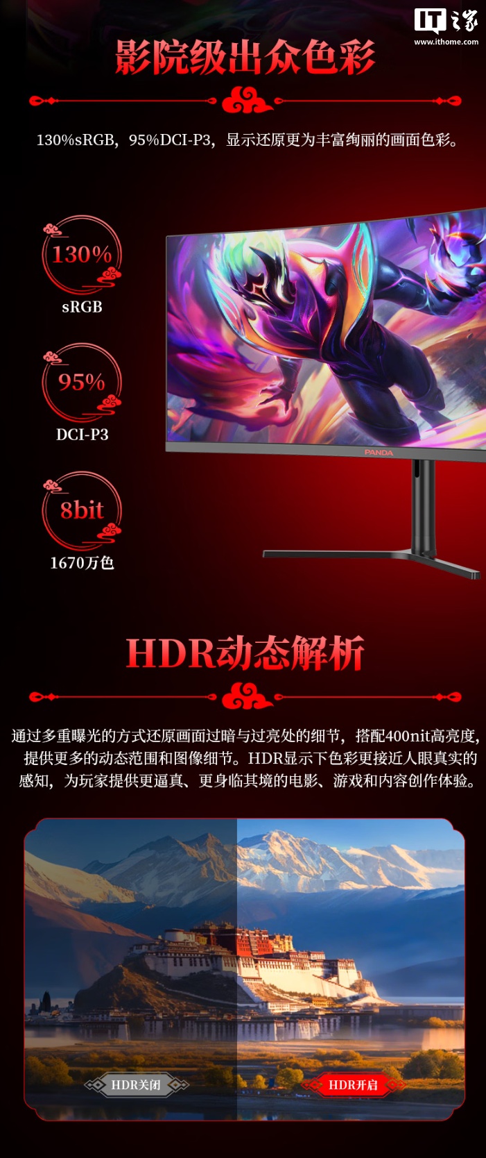 IT之家 1 月 16 日消息,熊猫(PANDA)现已推出 MX34U7 34 英寸 21:9 带鱼屏显示器,新品主打 1500R 大曲率设计,支持 PIP / PBP 分屏,售价 1299 元。