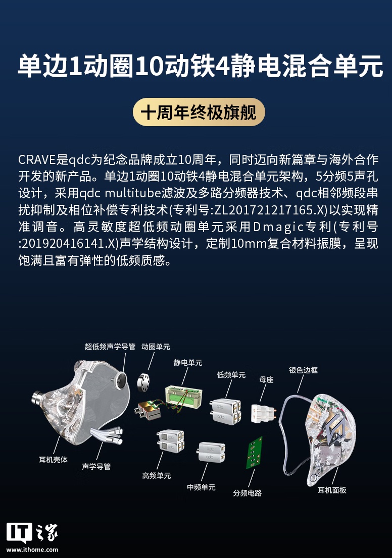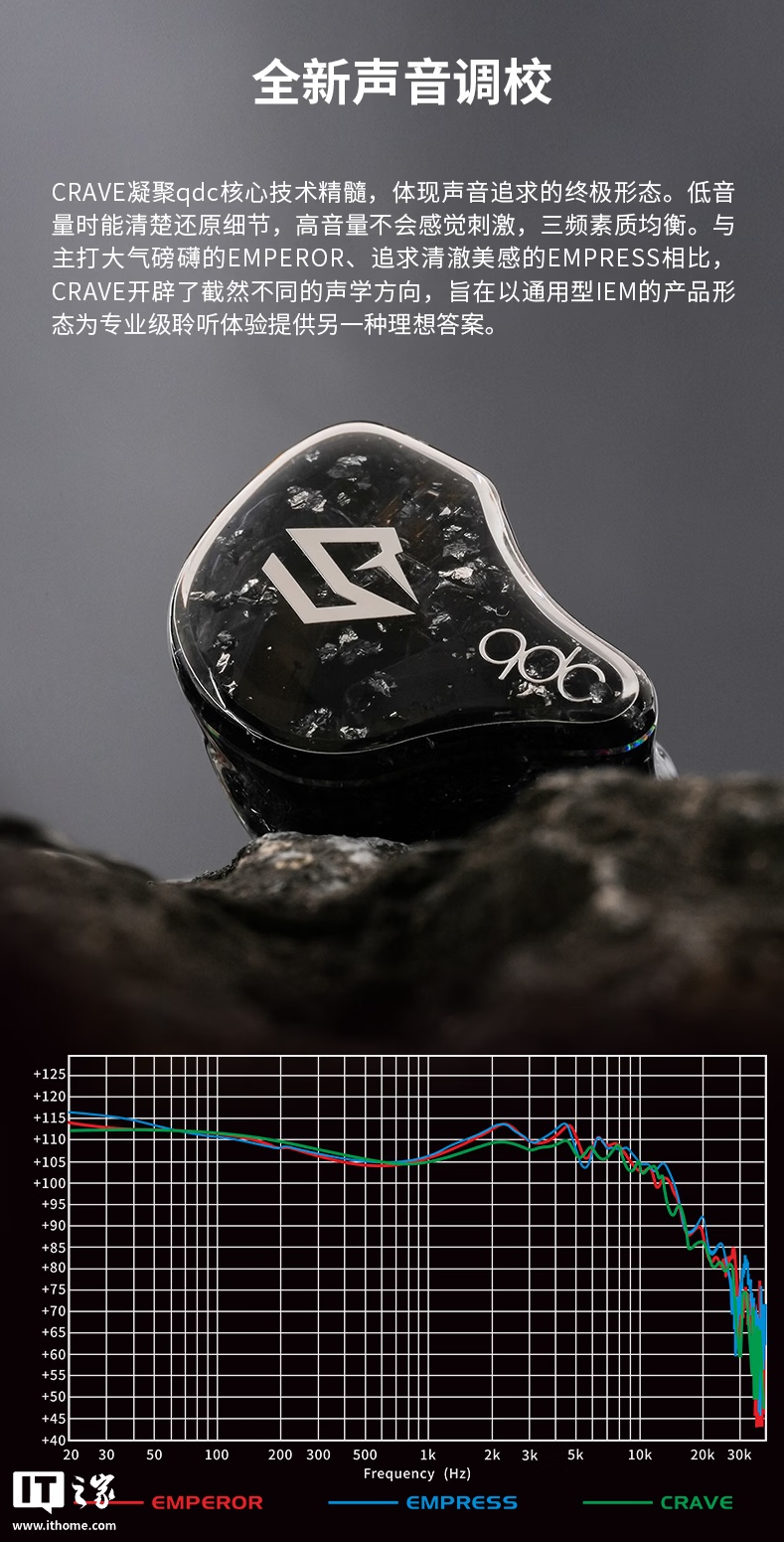 QDC 推出 CRAVE 渴望 耳机:搭载 1 动圈 10 动铁 4 静电单元,20999 元起