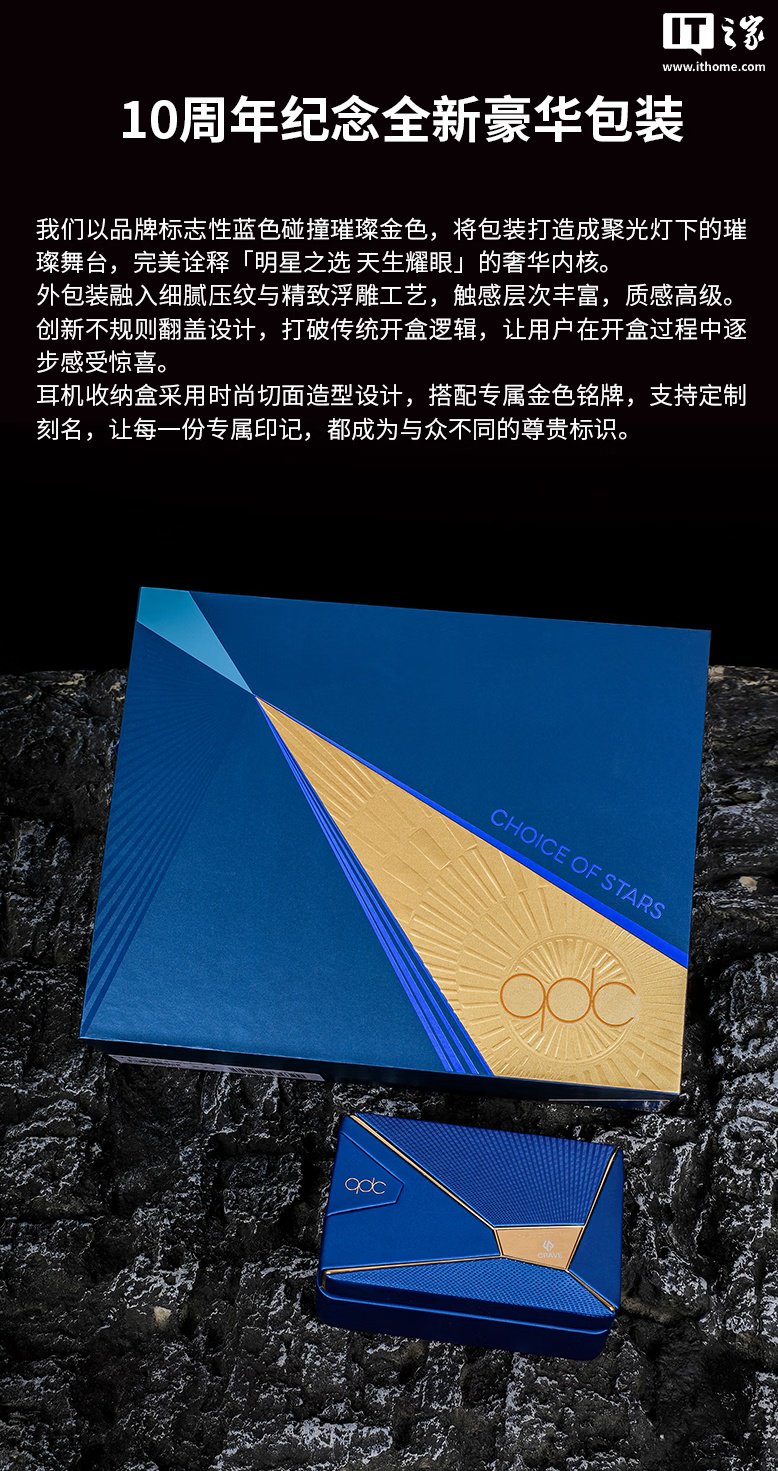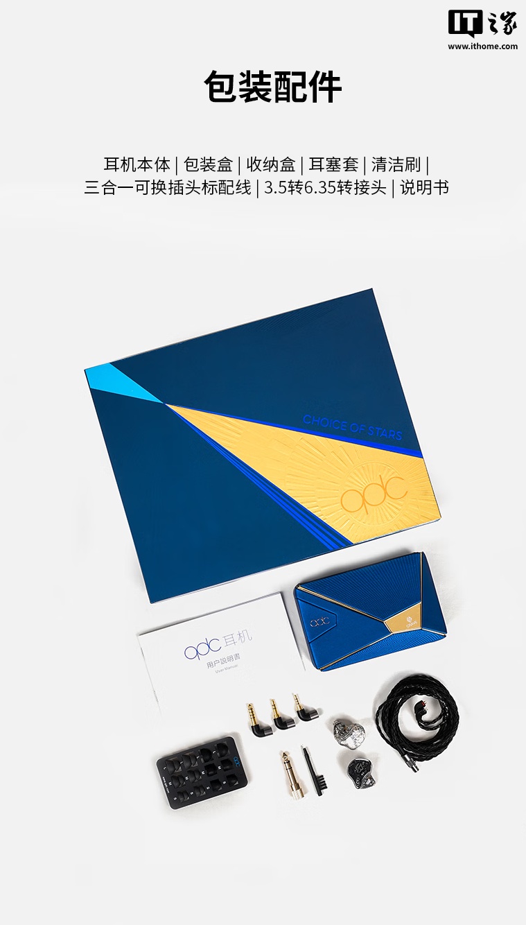 据介绍,这款耳机是 QDC 10 周年纪念产品,单边拥有 1 个动圈、10 个动铁、4 个静电单元,带有 5 分频、5 声孔设计,采用 QDC multitube 滤波及多路分频器技术以实现精准调音,可呈现富有弹性的低频质感。
