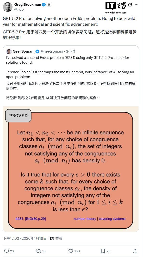 OpenAI 布罗克曼:GPT-5.2 Pro 再次破解公开数学难题,获陶哲轩认可