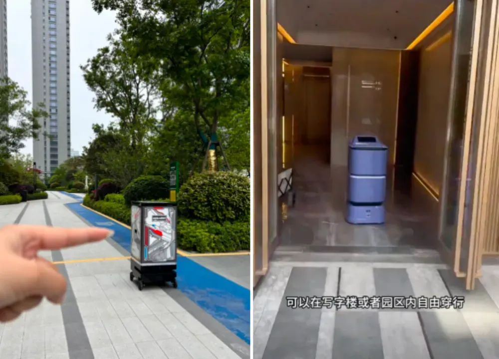 李维在同一个小区住了 3 年,最近第一次在电梯口给机器人让路。发觉到小区新增了几台送货机器人后,他第一次觉得自己的物业费没白花。