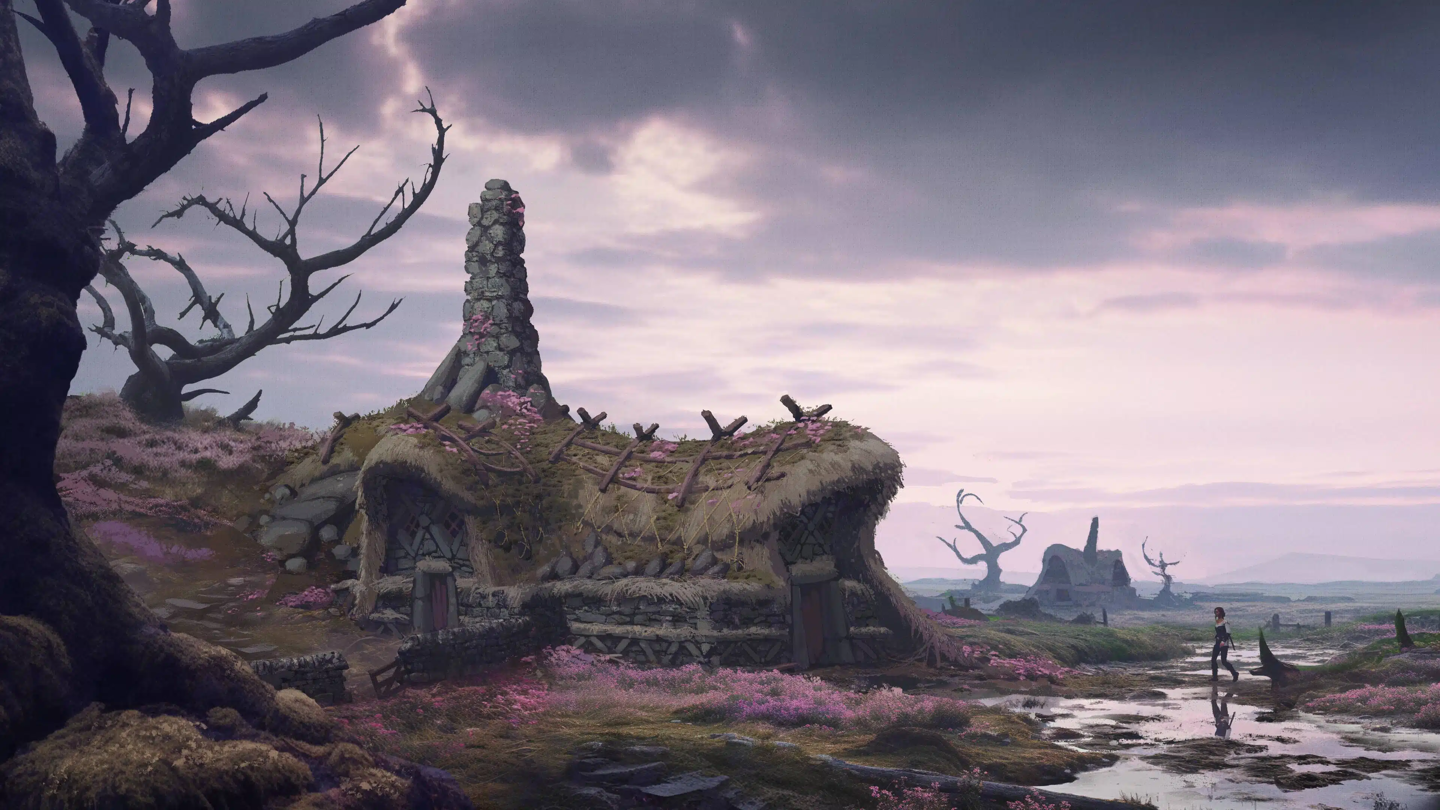 另一组引人关注的场景设定在名为“Hamlet”的沼泽村落,该地似乎是主角的住所。值得注意的是,图片呈现了该村落“常规状态”与“洪水过后”两种版本,暗示洪水可能成为关键剧情触发点,或与预告片片尾出现的女性反派存在关联。