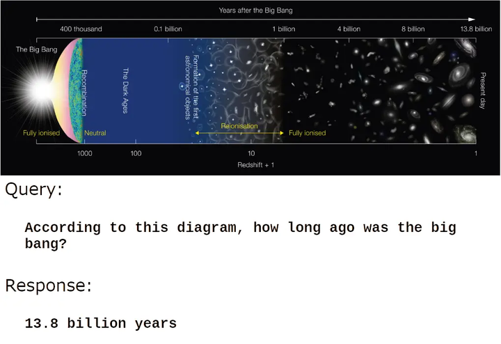 多模态模型将语义嵌入的概念扩展到文本之外,尤其是图像。我们会期望一张图片的嵌入与对该图片的准确描述的嵌入彼此接近: