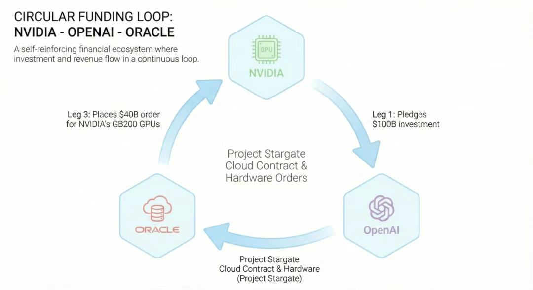 巴里的核心论点(也是据传美国司法部等监管机构介入调查的原因[4])在于:这套模式形同”资金空转”。这引发了一个尖锐的问题:如果英伟达停止向 OpenAI 投资,OpenAI 还有足够现金去和甲骨文(Oracle)签下那笔大单吗?而甲骨文又是否还会采购那些芯片? 如果答案是”不会”,那么部分营收数据的稳固性可能远不如表面看来那样坚实。