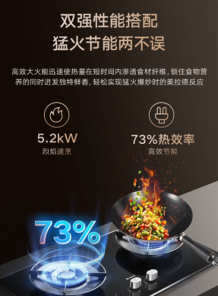 猛火是中式爆炒的灵魂。格力真火灶,集超速引射预混与双环热力环合舱等核心技术于一体,成就了5.2kW的超级大火力,满足爆炒需求,让菜肴迅速锁鲜,其自研的35°黄金抛火线技术,使火焰内旋紧贴锅底,燃烧覆盖面更广,热量传递更高效,配合聚能隔热罩,不仅能锁住热量、节能提效,更能有效阻隔热量向四周扩散,让烹饪者告别灼热感,舒适度大幅提升。此外,1-180分钟智能定时功能,支持慢炖煲汤时精准设定,时间到自动关火断气,安全省心,解放守候时间。