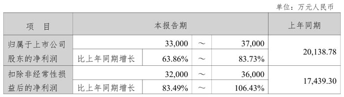 业绩预告期间为 2025 年 1 月 1 日至 2025 年 12 月 31 日。数据显示,公司归属于上市公司股东的净利润预计为 33,000 万元至 37,000 万元,较上年同期的 20,138.78 万元增长 63.86% 至 83.73%;扣除非经常性损益后的净利润预计为 32,000 万元至 36,000 万元,较上年同期的 17,439.30 万元增长 83.49% 至 106.43%,盈利规模与增长幅度均表现亮眼。
