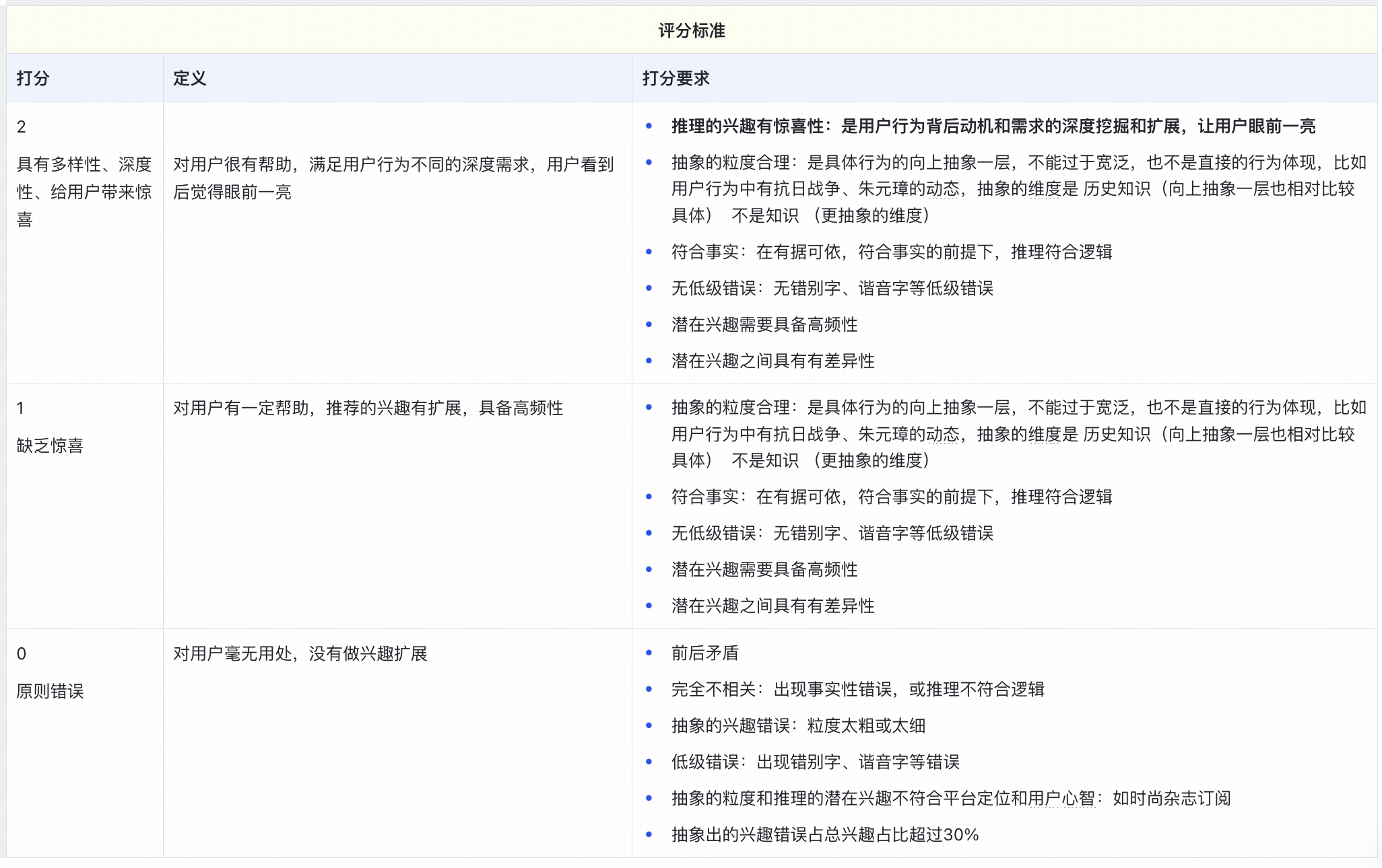 我们用deepseek-r1生成的3万条数据做标注样本,对qwq-32b模型经过sft后得到模型interestGPT,使用离线评估标准对interestGPT在1万条测试集上评估,抽样1000个用户评估结果如下: 0分占比:1%,1分占比:3%,2分占比:96%。