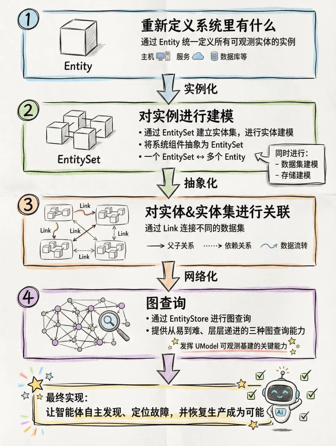 接下来,我们从 UModel 的构成和使用方式来看看它是如何把零散、杂乱的可观测数据,画成一张结构清晰、智能体能理解的图。