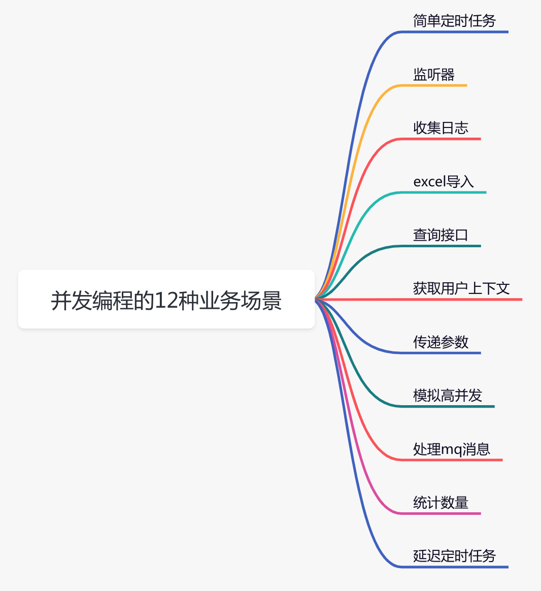 其实,在实际工作中我使用多线程的场景远远不只这12种,在这里只是抛砖引玉,介绍了一些我认为比较常见的业务场景。
