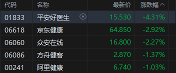 互联网医疗跌幅居前,京东健康跌超2%。光大证券 认为AI+医疗应当聚焦几大核心主线:AI制药因能显著缩短新药研发周期,药企付费意愿最强;AI医学影像是落地最成熟的赛道;AI慢病管理因能降低长期保险赔付,商业价值凸显;AI手术机器人因能解决医疗资源分布不均,具备极强的国产替代逻辑。