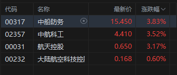 军工股走强,中船防务涨超3%。浙商证券发布研报称,中船防务2025年报业绩预告符合预期,公司预计2025年归母净利润同比增长150%-197%预计2025年实现归母净利润9.4亿元至11.2亿元,同比增长149.61%-196.88%;扣非归母净利润8.5亿元至10.2亿元,同比增加153.27%-203.93%。