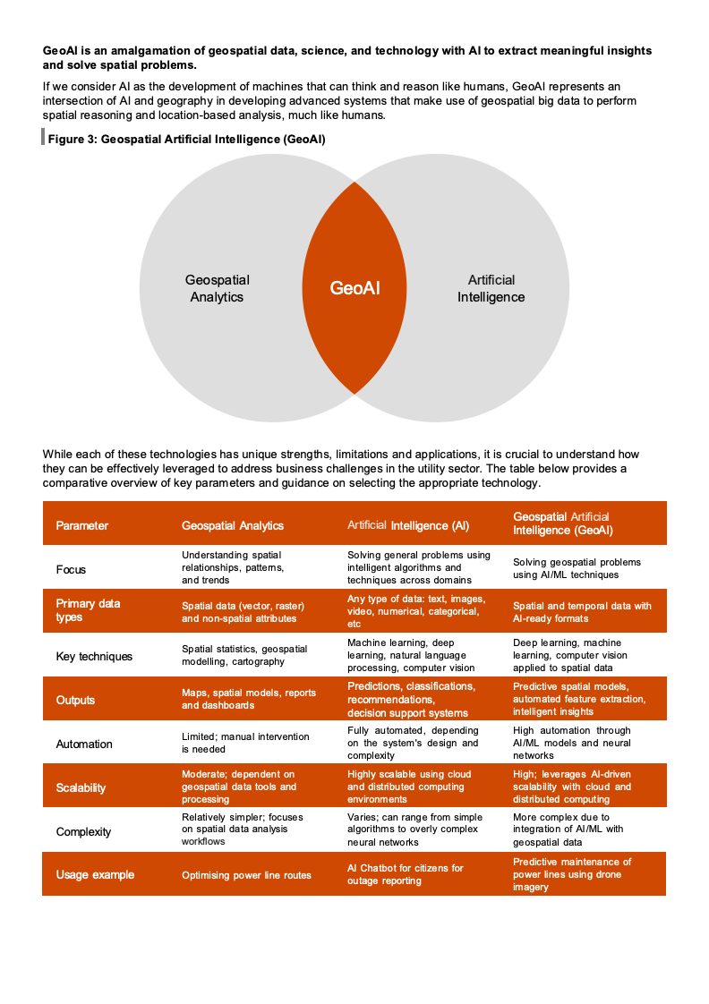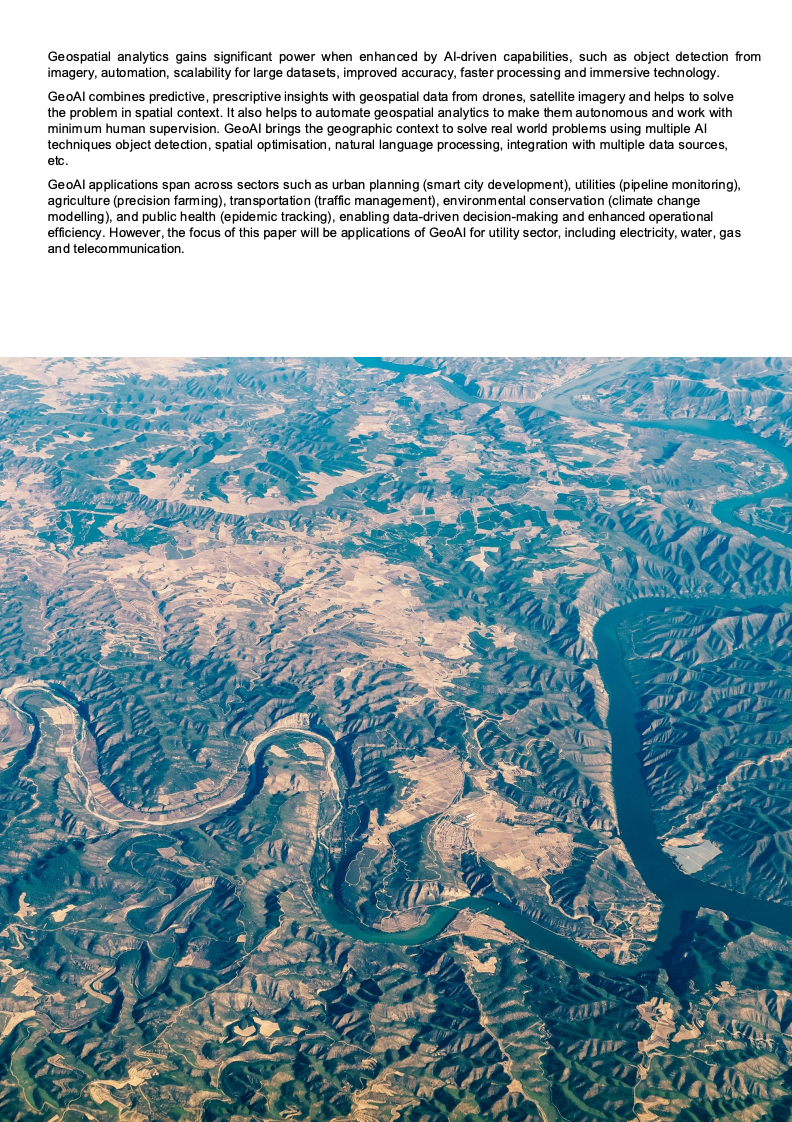 在全球公用事业加速数字化的背景下,地理空间数据与人工智能的融合正在成为基础设施管理的重要变量。报告指出,公用事业的核心目标在于保障水、电、燃气与通信等关键服务的可靠交付,而高精度地理空间数据是实现资产可视化、网络优化和故障快速响应的基础。随着资产规模扩大和网络结构复杂化,传统人工与规则驱动的方法已难以满足效率与准确性的双重要求,GeoAI因此进入战略窗口期。