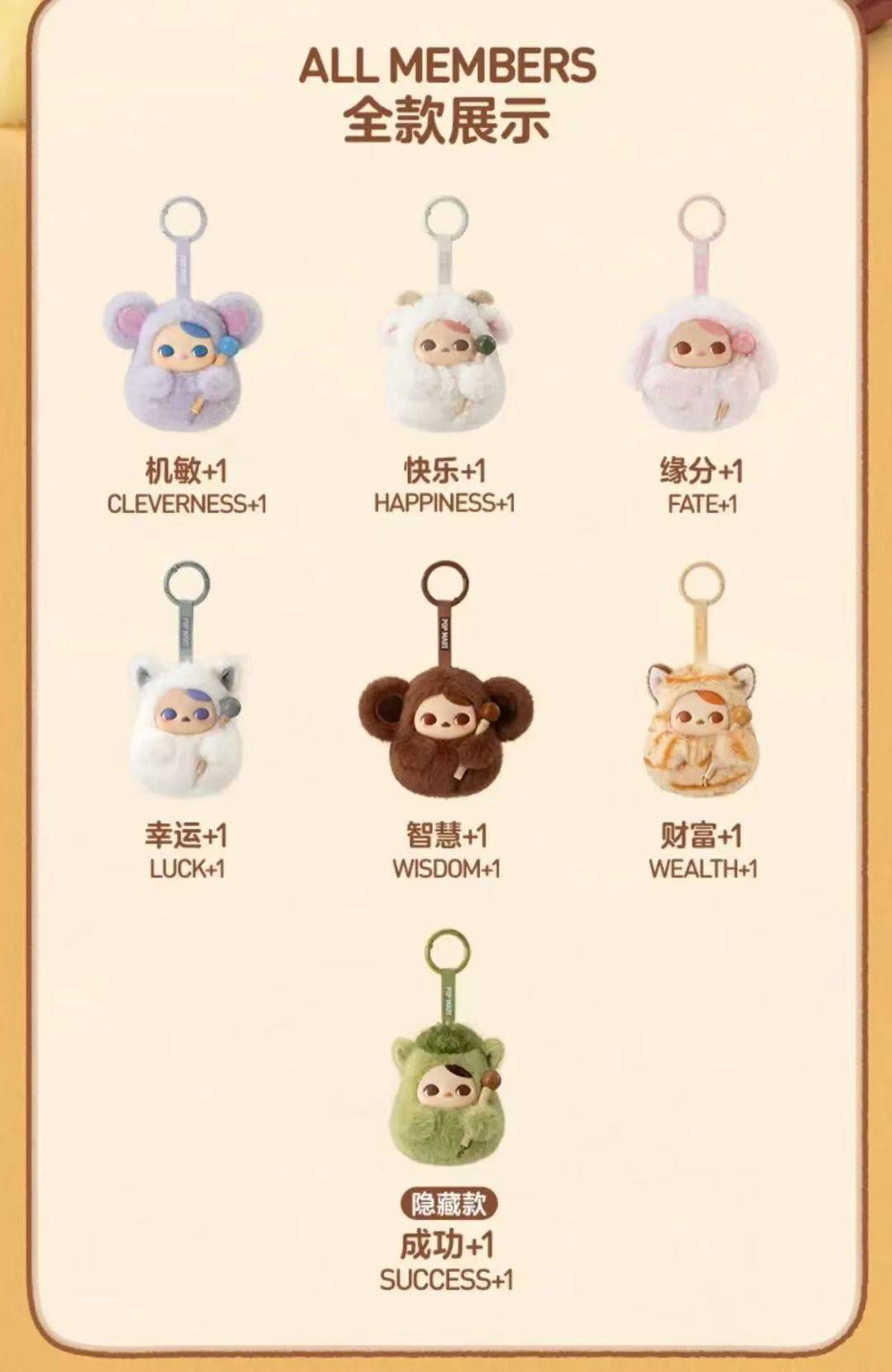 记者了解到,“PUCKY敲敲系列”为搪胶毛绒挂件,该系列采用6款常规角色 + 1款隐藏款的配置。产品核心亮点在于轻拍头部即可发出清脆逼真的木鱼声效,每款还标注“财富+1”“快乐+1”“智慧+1”等吉祥寓意,契合了当下年轻人用轻松方式缓解情绪的需求,被封为“打工治愈神器”。目前,泡泡玛特官网小程序显示已售罄。