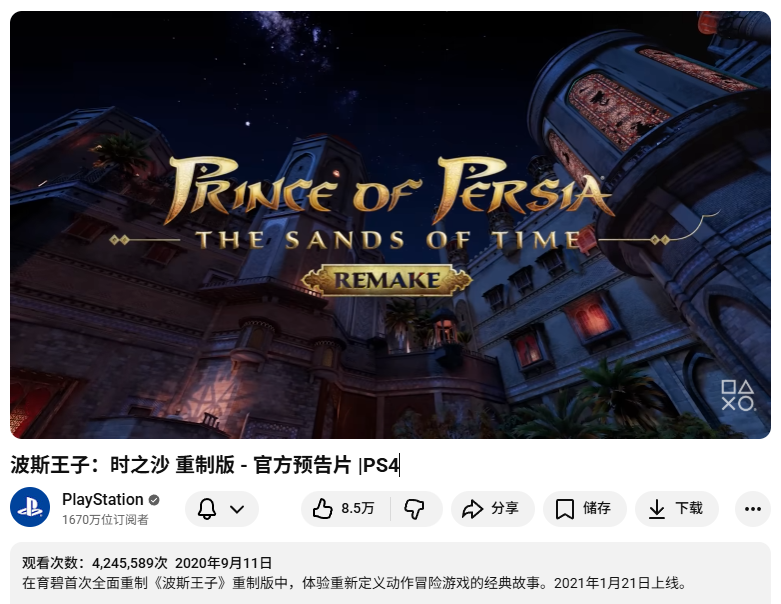 然而,随着之后开放世界游戏的崛起,《波斯王子》这类线性叙事游戏逐渐被边缘化,IP陷入沉寂——直到进入2020年代,随着《生化危机2:重制版》和《最终幻想7:重制版》等作品在商业与口碑上取得双重成功,游戏行业也迎来一股“重制热潮”。