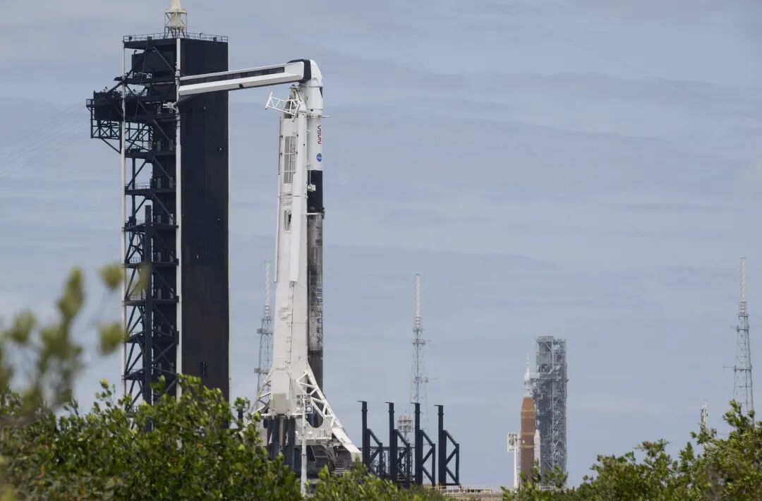 当地时间2022年4月20日,美国SpaceX猎鹰9号火箭搭载着该公司的载人龙飞船,为Crew-4任务继续做准备。图片来源:视觉中国