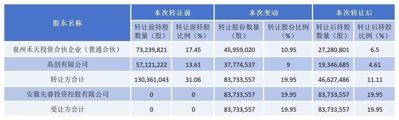 2025年12月26日,天创时尚公告,安徽先睿受让泉州禾天及香港高创合计19.95%股份,完成后控股股东变更为安徽先睿,实际控制人变更为慈兴集团董事长胡先根。