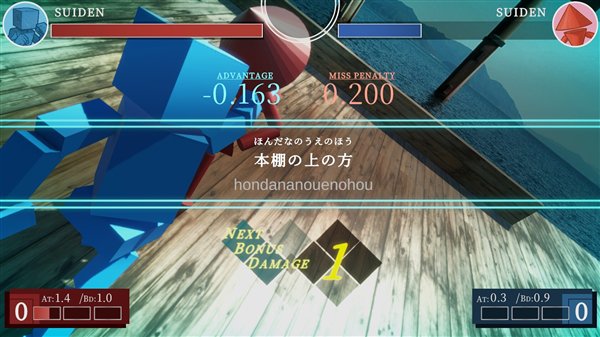 例如,输入mae(日语“前进”的罗马拼音)可以让角色前进,而输入“panti”就能挥拳,甚至连防御和必杀技的发动也需要玩家快速输入特定的语句,如果想打出一套令人眼花缭乱的连段,唯一的诀窍就是打字速度够快。