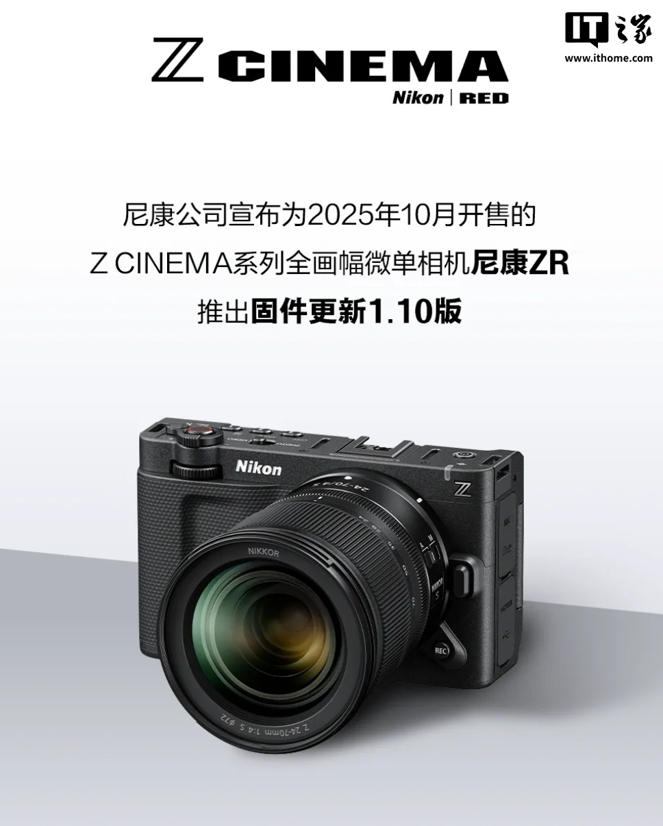 IT之家 1 月 27 日消息,尼康官方今天在公众号平台发文,宣布为 ZR 全画幅无反相机推出 1.10 版固件更新,主要优化连续录制时间、时间码同步操作、自定义 LUT 导入等功能。 Source link 未经允许不得转载:紫竹林-程序员中文网 » 连续录制时长提升至约 6 小时、自定义 LUT 提升至 50 个,尼康 ZR 相机 1.10 版固件发布 上一篇消息称特斯拉 Robotaxi 自动驾驶出租车全系摄像头配清洗喷嘴 下一篇近10年中国电视销量一览:2025年最低 几乎腰斩 相关推荐龙湖集团销售额同比降37.54% 创始人吴亚军对董事长陈序平放心吗?年会名场面!何小鹏坐飞行汽车降落年会现场 高颜值美女司机全程护航再被唐尼杀一次吗 曝灭霸《复仇者联盟》回归对抗杜姆委员建议:琉璃河、周口店、云居寺联手打造特色旅游去年北京市检察机关受理“四大检察”案件123412件月球变身地球“辐射监测站”,中国科学院破解全球能量收支观测难题国际丨委内瑞拉代总统:委内瑞拉政府不接受任何外部命令从一张小纸条开始!我国团队靠自主创新打破质疑,实现世界领先 评论 抢沙发 取消 有人回复时邮件通知我Δ 提交评论 昵称昵称 (必填) 邮箱邮箱 (必填) 网址网址