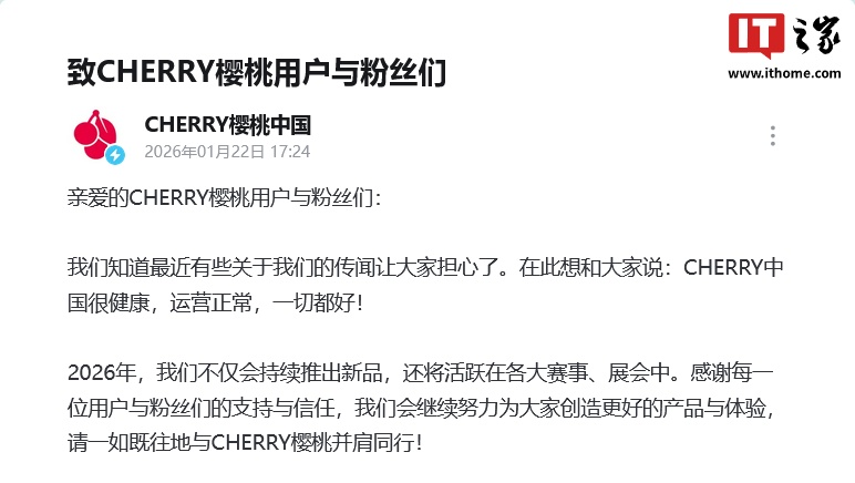 未经允许不得转载:紫竹林-程序员中文网 » CHERRY 中国:运营正常,2026 年会持续推出新品