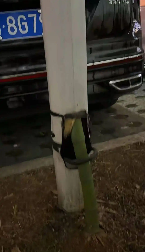 然而,这棵竹子不仅活了下来,还贯穿了整根灯杆子,在顶部冒出郁郁葱葱枝叶,如此坚韧的生命力,它被网友戏称为“竹坚强”。