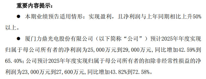 未经允许不得转载:紫竹林-程序员中文网 » 力鼎光电 2025 年业绩预增显著 净利润同比最高增幅达 65.40%