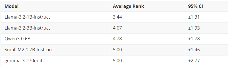 冠军: Llama-3.2-1B-Instruct(平均排名:3.44)