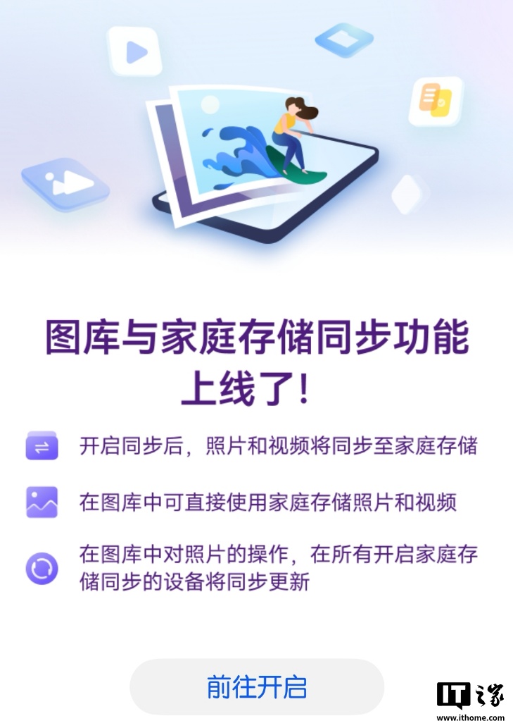 IT之家 1 月 27 日消息,据用户反馈,华为家庭存储设备的图库与家庭存储同步功能已正式上线: