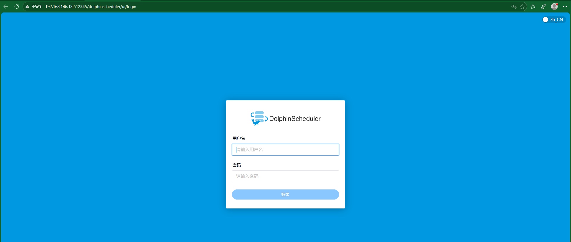 - Apache DolphinScheduler访问地址:http://localhost:12345/dolphinscheduler/ui ,localhost改成自己虚拟机地址即可登录系统 UI。默认的用户名和密码是 admin/dolphinscheduler123