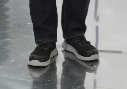 据介绍,该款劳保鞋并非普通鞋款,鞋底具备防静电功能,鞋头则内置防砸铁板,是满足实验室作业安全的专业装备。
